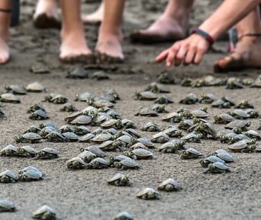 The third day starts with breakfast at 7:00am. At 8:30am, we'll learn about the rescue, birth, and release of baby Taricaya turtles. We will witness the magical moment of their birth on the artificial beach at the rescue and research center, with children participating in the process. Scientists will guide us through the handling, studying, weighing, measuring, and DNA sampling of the baby turtles.