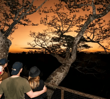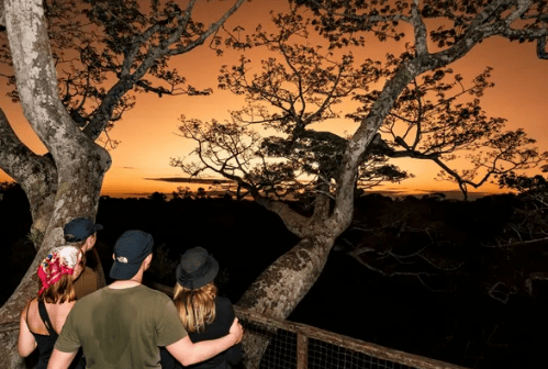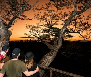 The highlight of the afternoon will be a forest walk at 5:00pm to the canopy walkway, where we'll climb an ancient Lupuna tree, standing tall at 42 meters, to marvel at the vibrant forest canopy and its colorful birds, culminating in a breathtaking sunset. Dinner will be served at 7:00pm at the reserve, followed by an insightful welcome talk at 7:40pm by resident biologists. The day will conclude with an 8:00pm night boat ride in search of caimans and other nocturnal creatures before we retire for the night at 9:00pm.