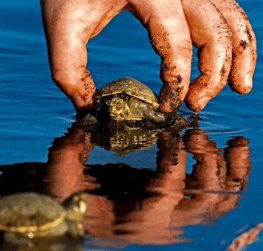 Witness magical moments with tiny river turtles
