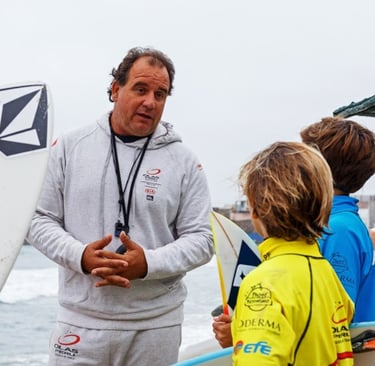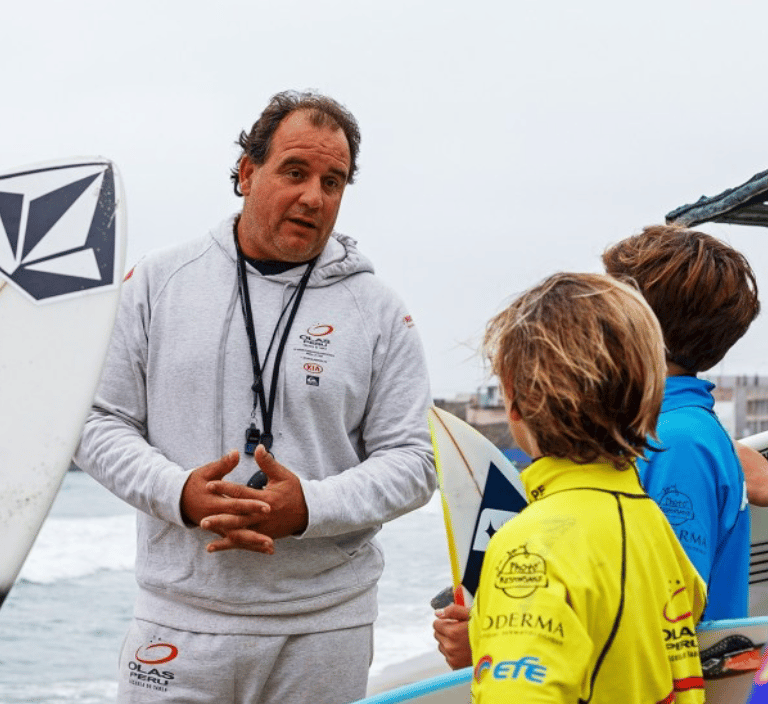 He has mentored world champions such as Sofía Mulánovich . His leadership in high-level competition is proven, having acted as Strategic Advisor to the Peruvian Tabla Teams that became ISA World Team Champions (Open 2010 and Junior 2011). Appointed Global Ambassador of the WSCN in 2024
