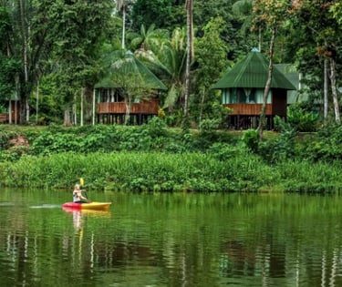 Post-breakfast, we embark on a leisurely 4 km hike through the rainforest, following trails that meander beneath the towering Kapok and Ironwood trees. Along the way, our expert guide will help you spot wildlife that may cross our path, from curious monkeys to colorful frogs and insects. After a flavorful lunch featuring local Amazonian cuisine, enjoy some downtime before we head out for a river cruise on a traditional Peke Peke canoe. As we float along, the sun sets behind the forest, casting golden reflections on the water. We end the day with a light dinner, retiring early to prepare for the adventures ahead.